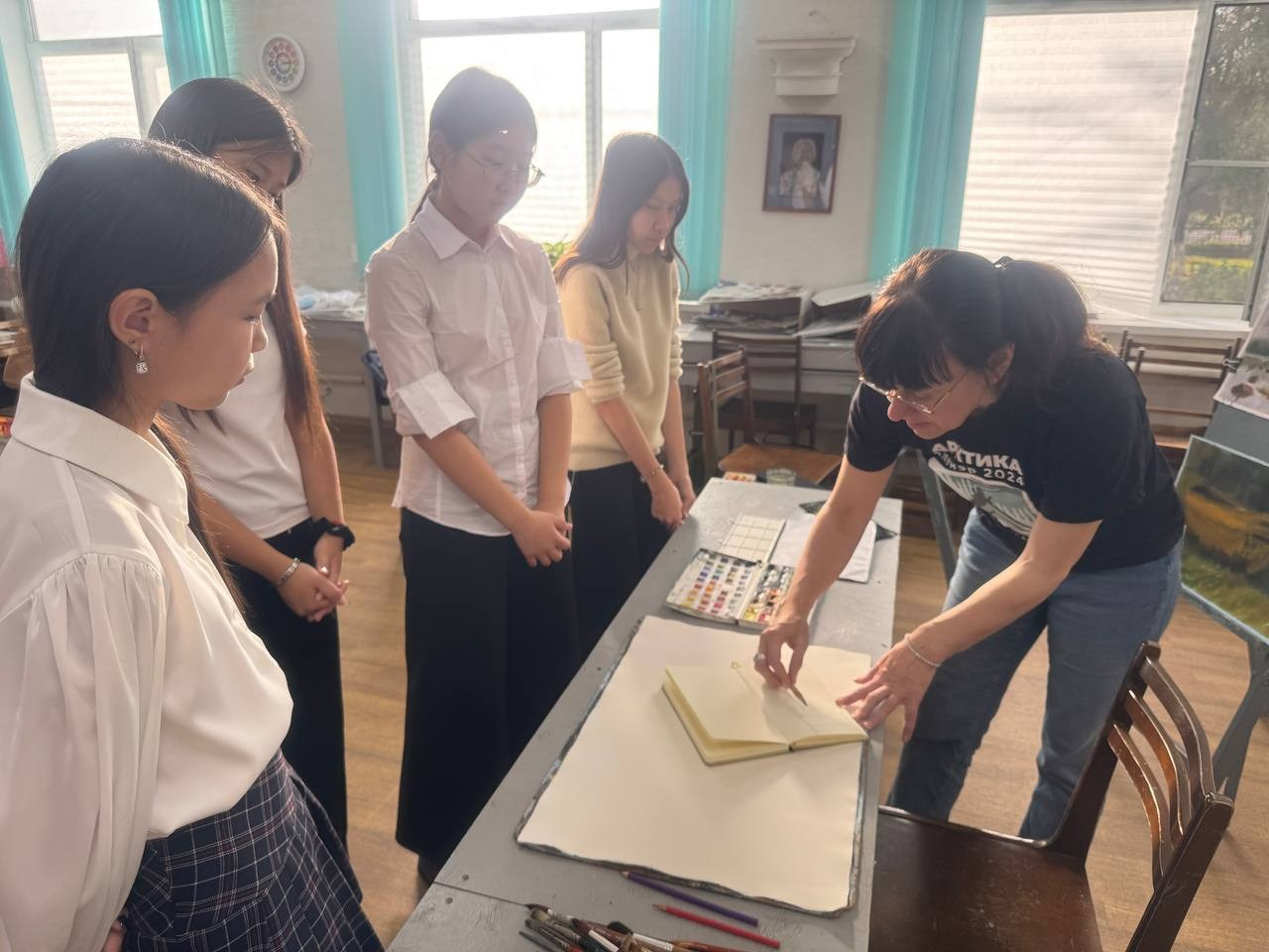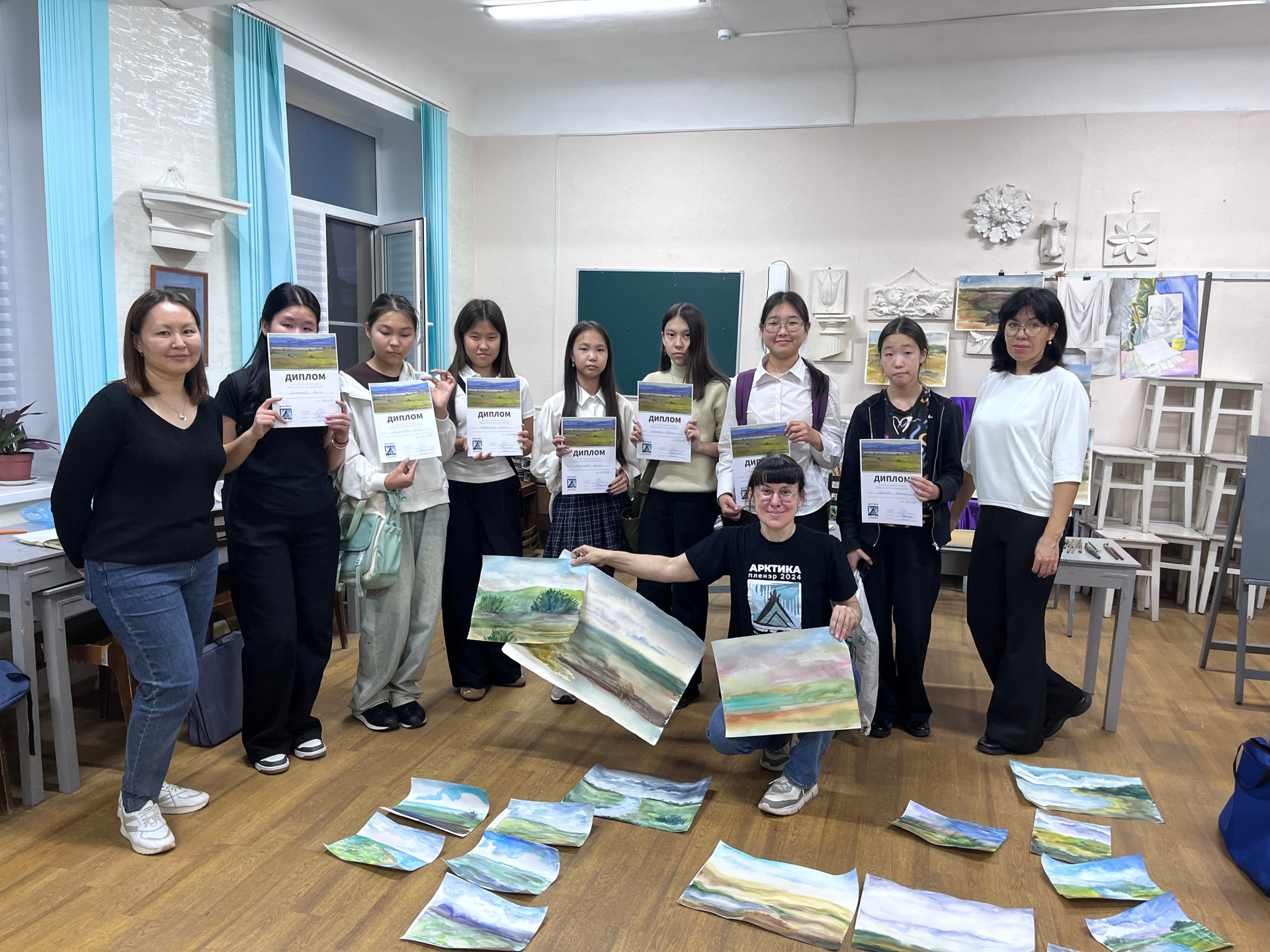 В 2025 году в городе Элиста совместно с участниками творческой группы «Арктика. Пленэр» проведены мастер-классы под общим названием «Вдохновенные движение». Я провела мастер-класс по рисование пейзажа в технике акварель «а-ля прима». В мастер-классе приняли участие учащиеся детской школы искусств ДШИ№ 1.